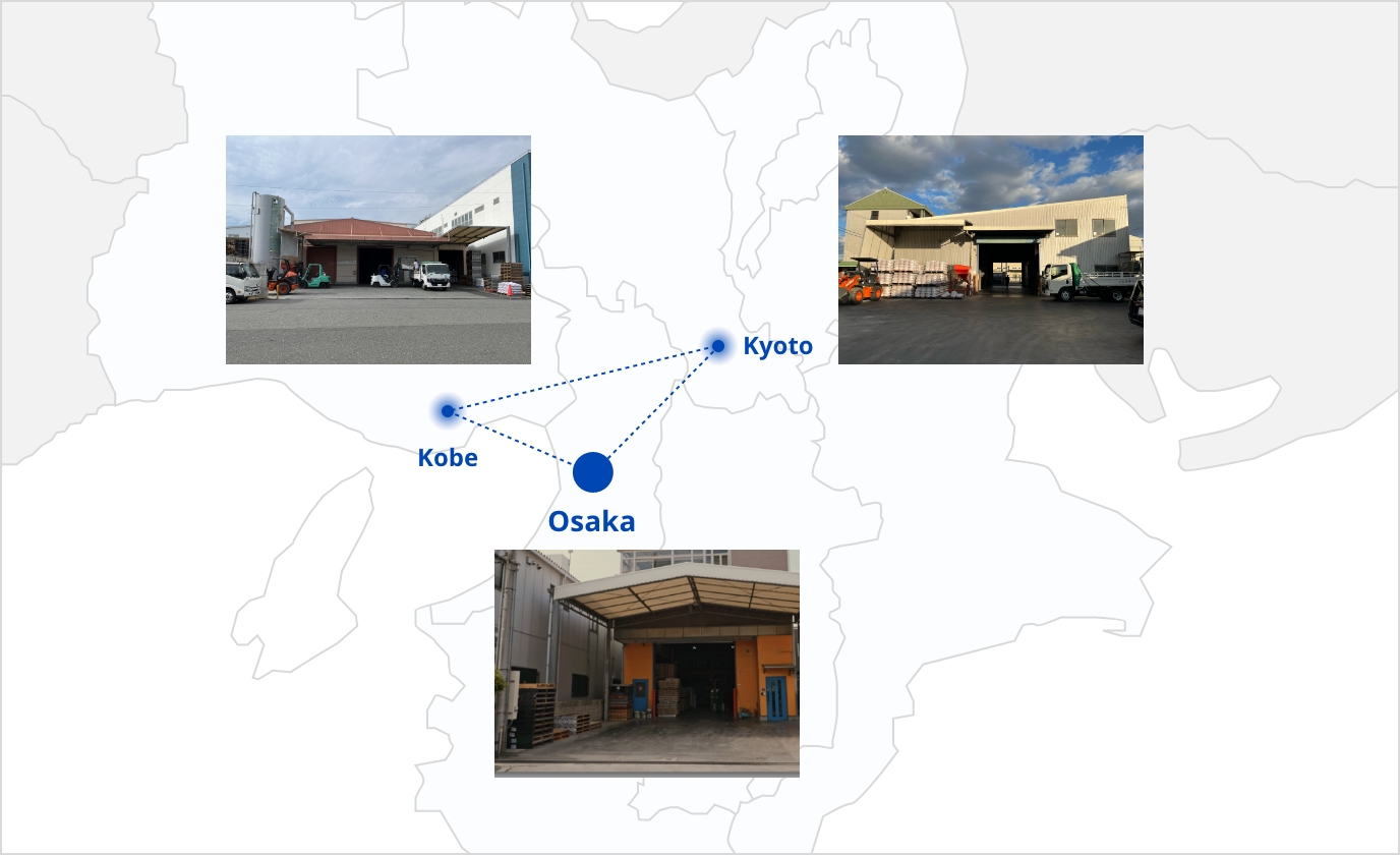 松原建材は、関西3拠点による圧倒的な物流網を強みとし、お客様から高い評価を得てきました。さらなる物流サービスの強化に向けて、ドライバーへの積極的な採用投資と新規協力運送業者との取引拡大を進めています。